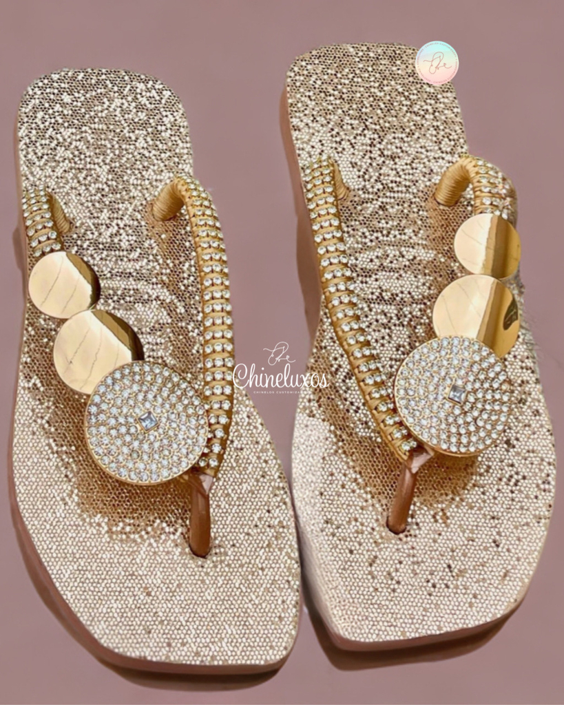 Este modelo exclusivo mantém a clássica silhueta das Havaianas, garantindo leveza e praticidade em cada passo. Os círculos dourados conferem um detalhe luxuoso, enquanto os strass adicionam um brilho sutil, ideal para ocasiões especiais ou para dar um up no seu visual de verão.